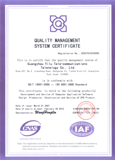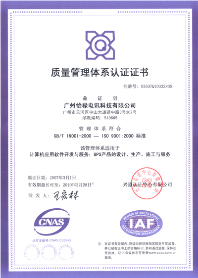 热烈庆祝怡禄电讯公司通过ISO9000质量管理体系认证,完整地建立公司质量管理体系、 质量目标及质量方针,规范了各项管理制度并严格实施,公司各项管理事务正朝规范化道路发展。