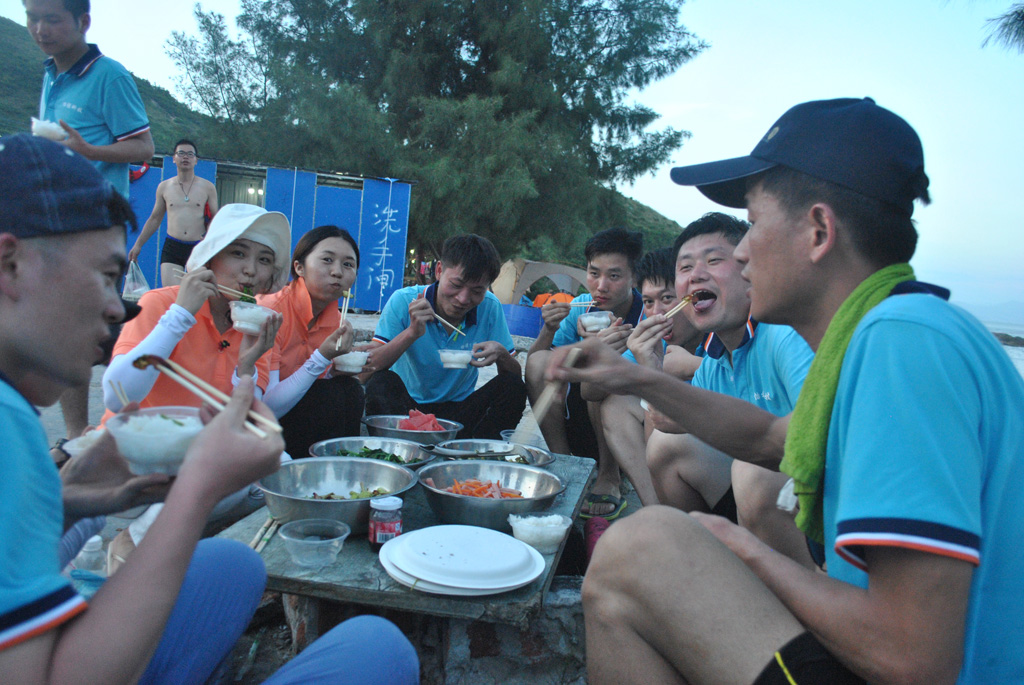 激烈的项目挑战过后,就开始我们美味的晚餐制作了,每一队都大显身手,你生火我做饭,配合得天衣无缝,做出一顿令人垂涎欲滴的满汉全席。