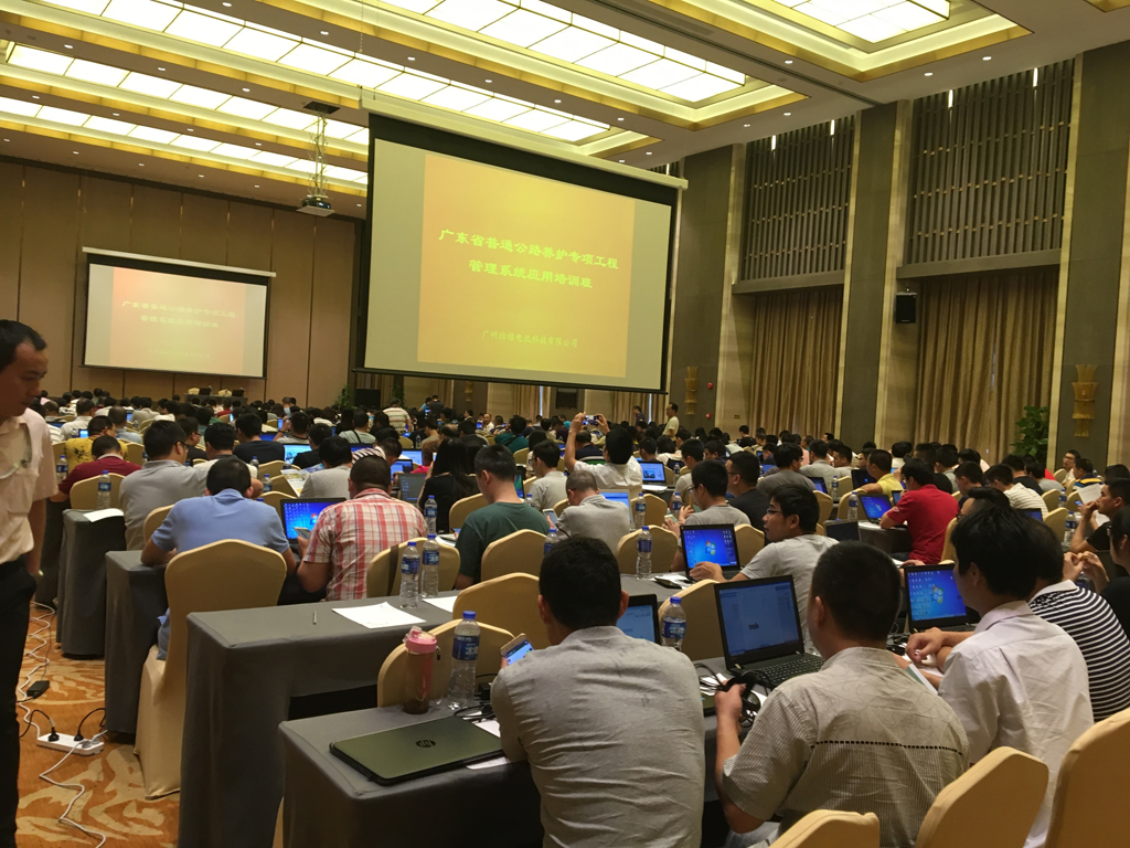 该会议由广东省公路事务中心组织,我司承担系统研发、操作培训、基础数据收集整理及会议务承办等工作。会议召集了全省交通、公路各级应用单位养护部门共计近400人集中培训。会议进行系统简介、业务介召、操作演示、数据对接、现场答疑等多个环节,以实用、专业、现场操作方式受课,取得良好的培训效果。