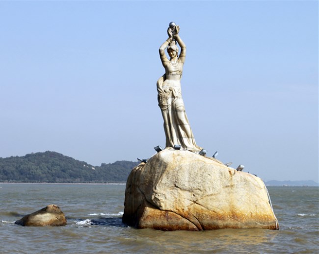 到达珠海,第一站我们来到了【珠海渔女雕像】,珠海渔女雕像位于香炉湾畔的情侣路上,雕像身高约 8.7 米,由 70 余块花岗岩打造,是珠海的标志性景观。雕像造型来源于珠海的一个美丽传说,她身上缠着渔网,双手举着硕大的宝珠,姿态优美。